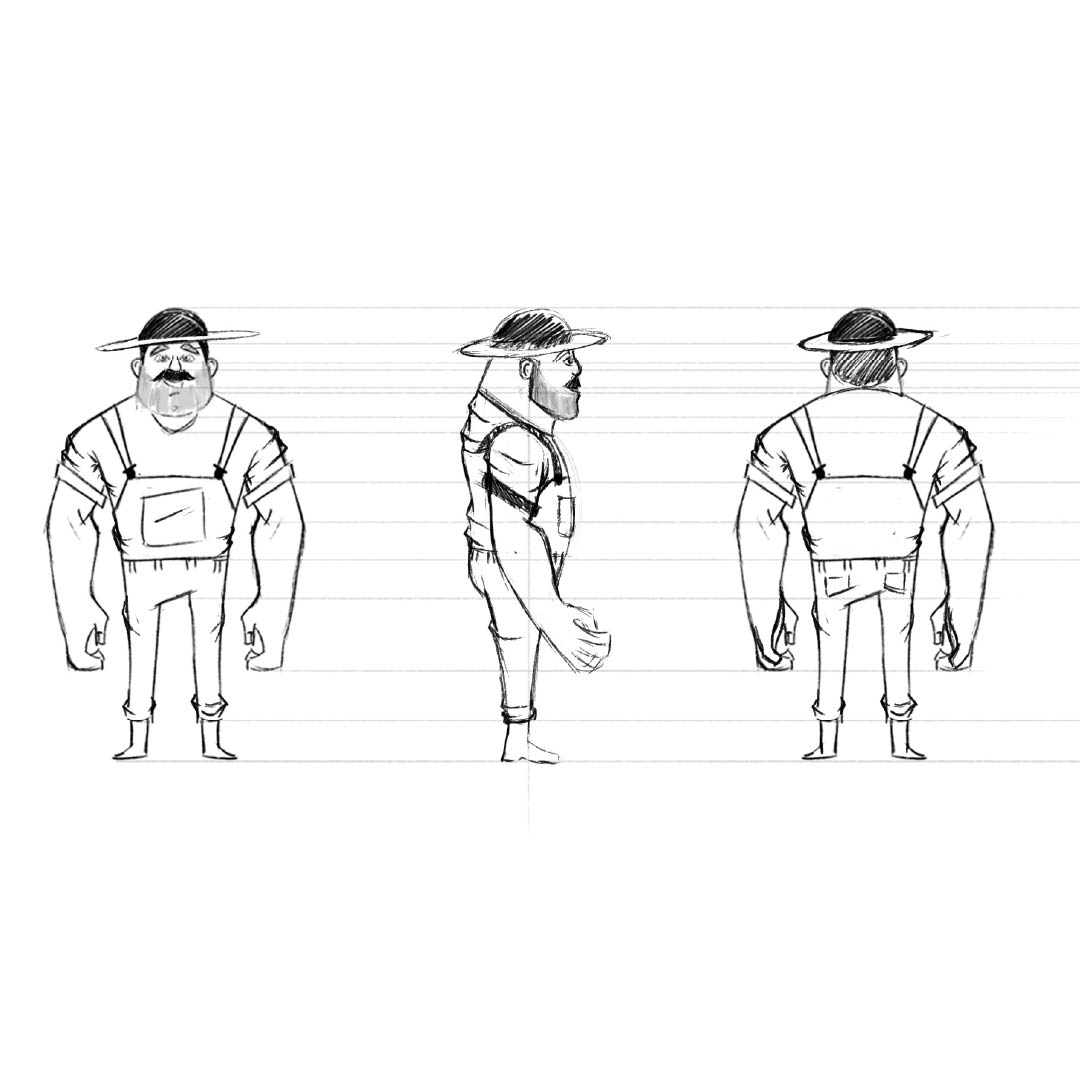 With the character, we went a bit on the goofy side. We took a gardener as the person and really went all out on him being a funny size. We used the company colors to make the cloths, to make feel the part.